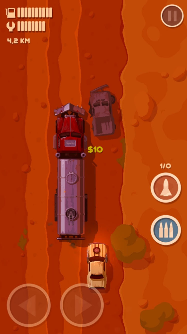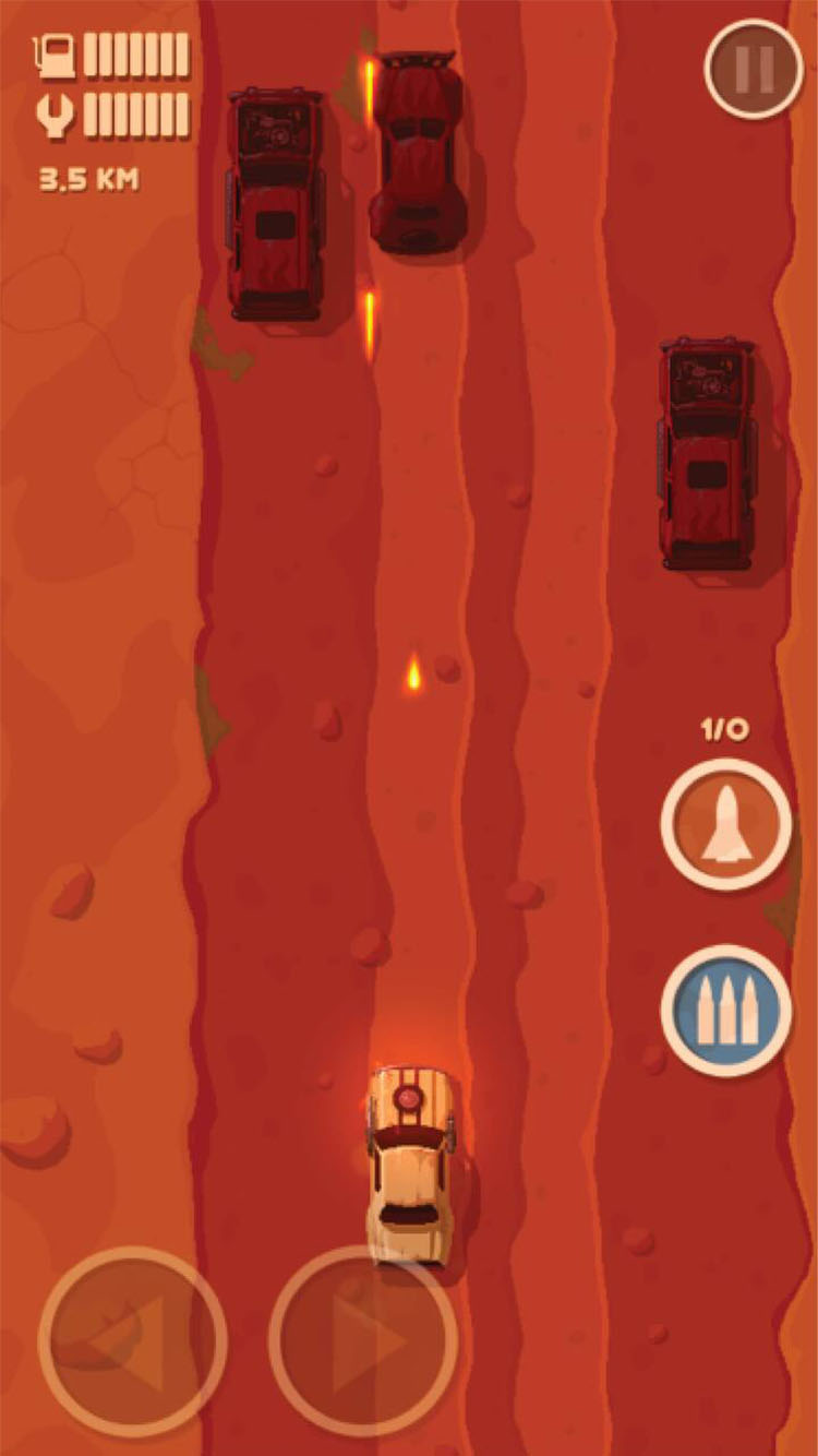 Drive using your finger or arrow keys to dodge cars, trucks, and bullets.